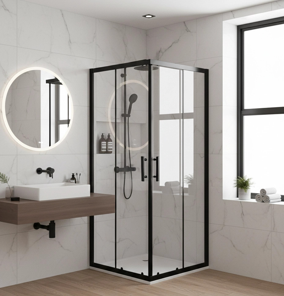 A klasszikus és egyben továbbfejlesztett formavilág egyesül ebben a keretes szerkezetű zuhanykabinban. A termék kialakítása során előtérbe került a praktikus és a könnyen tisztítható elemek használata. Zuhanykabinunk 6 mm vastag biztonsági üvegből készül. A tökéletes záródást szilikonos mágnes profilok biztosítják. A keret krómozott alumínium anyaga stabilitást és hosszú élettartamot ad a terméknek. Az esetleges fali egyenlőtlenségeket kiválóan el tudják tüntetni, mivel a fali profil mindkét oldalon állítható 1,5 cm-t. Zuhanykabinunk egyaránt építhetőek csempézett aljzatra és zuhanytálcára is.Jellemzők:
